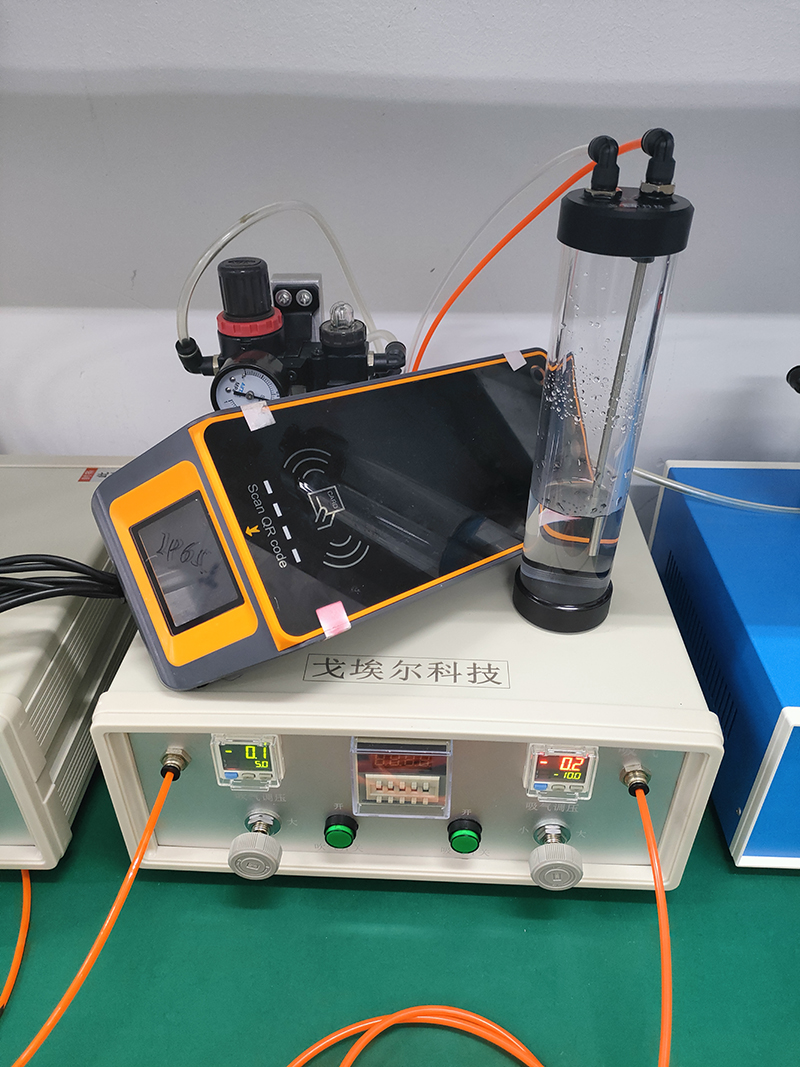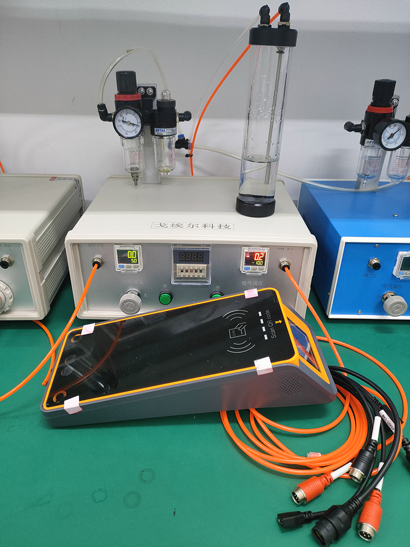 因此,需要根据产品的形状制作一个刷脸机测试模具,将产品放入模具中,通过气密性测试设备对模具进行充气,通过气密性测试设备中的精密传感器实时改变压力,根据设定的参数给出测试结果,从而实现刷脸机的气密性和防水性测试。